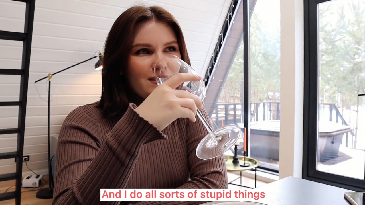 Разговоры — 00:07; выпивают — 00:40; минет — 01:37, 12:09; грязные фразы — 02:12, 03:42, 12:03; POV — 02:44; "Нас тут никто не увидит?" — 02:55; раком — 04:28; миссионерская — 06:49; скачет на члене — 09:03; секс стоя — 09:29; дрочат парню — 12:48; камшот на грудь — 13:03; слизала сперму — 13:13